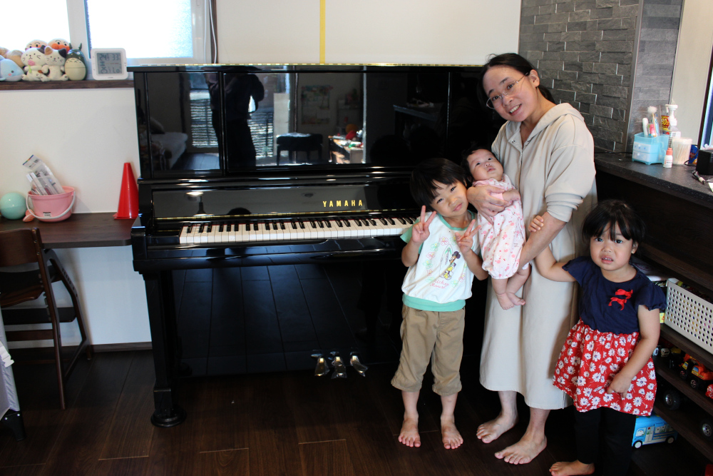 納品調律にお伺いすると、奥様と3人のお子さん達で迎えて下さいました。